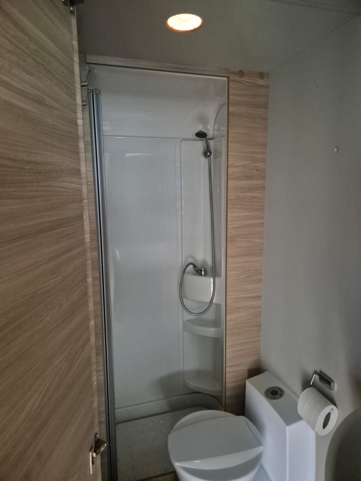 Łazienka z toaletą kasetową opróżnianą z zewnątrz